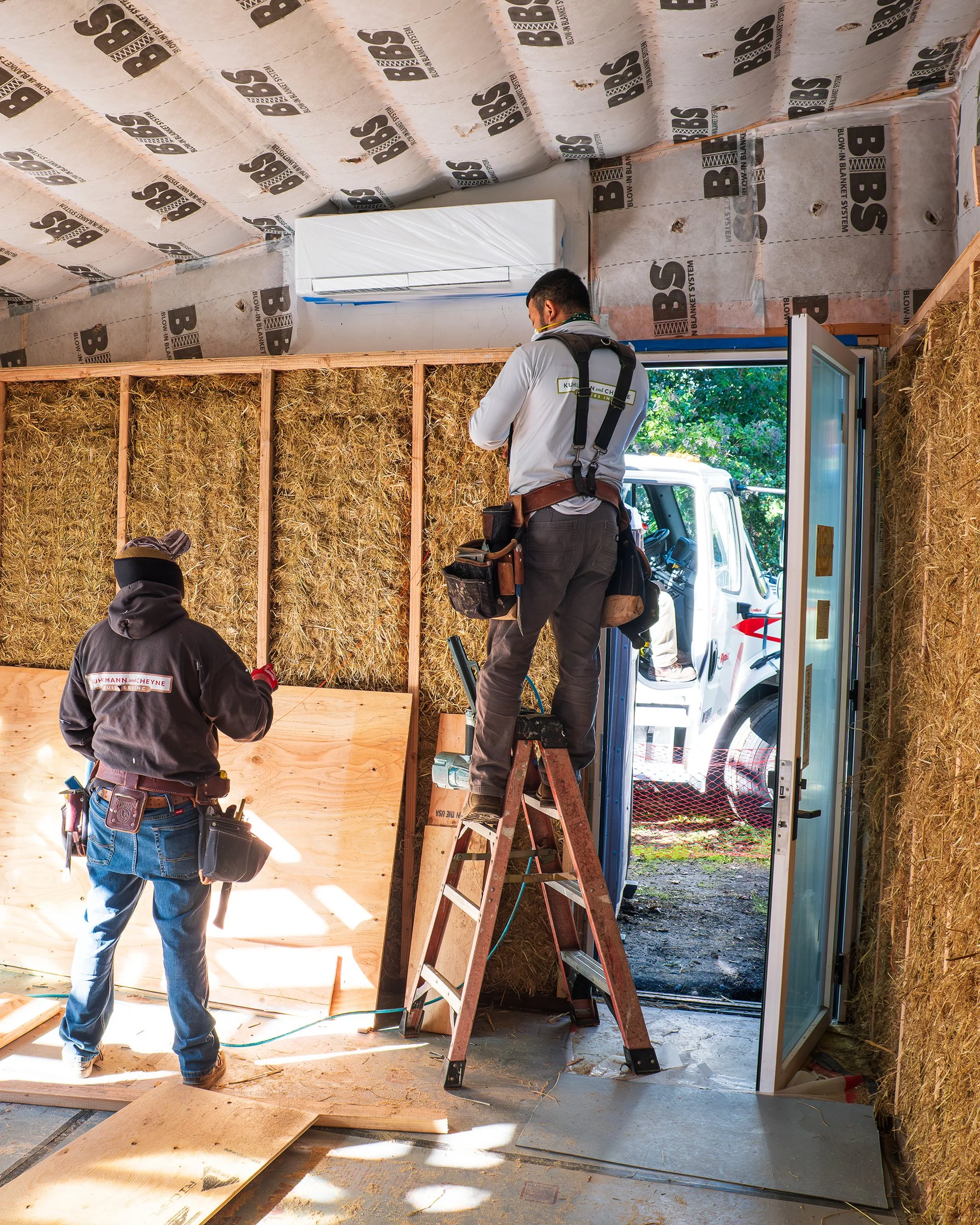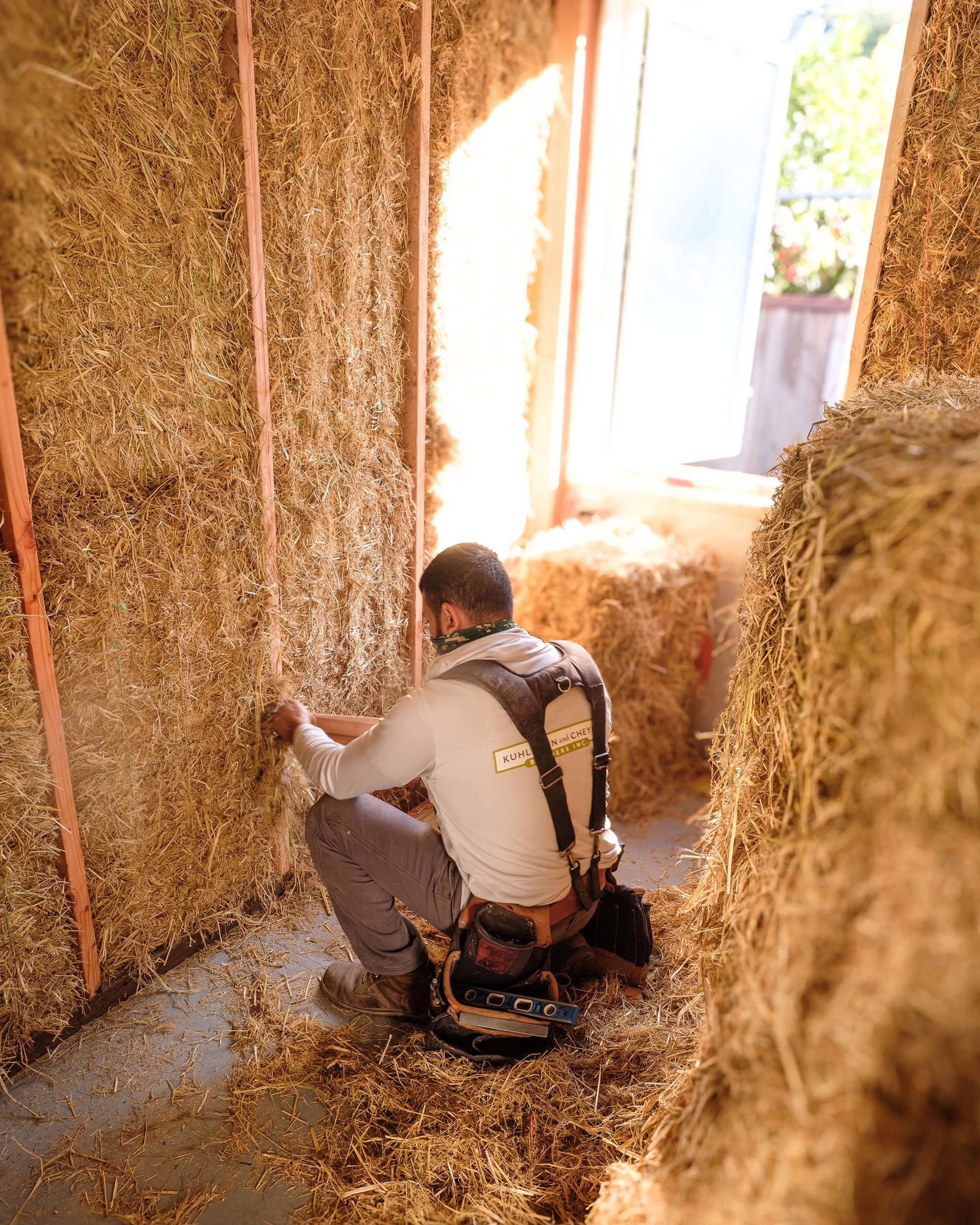 Strawbale installation in our Strawbale ADU #1 project (photo by Alexander White)