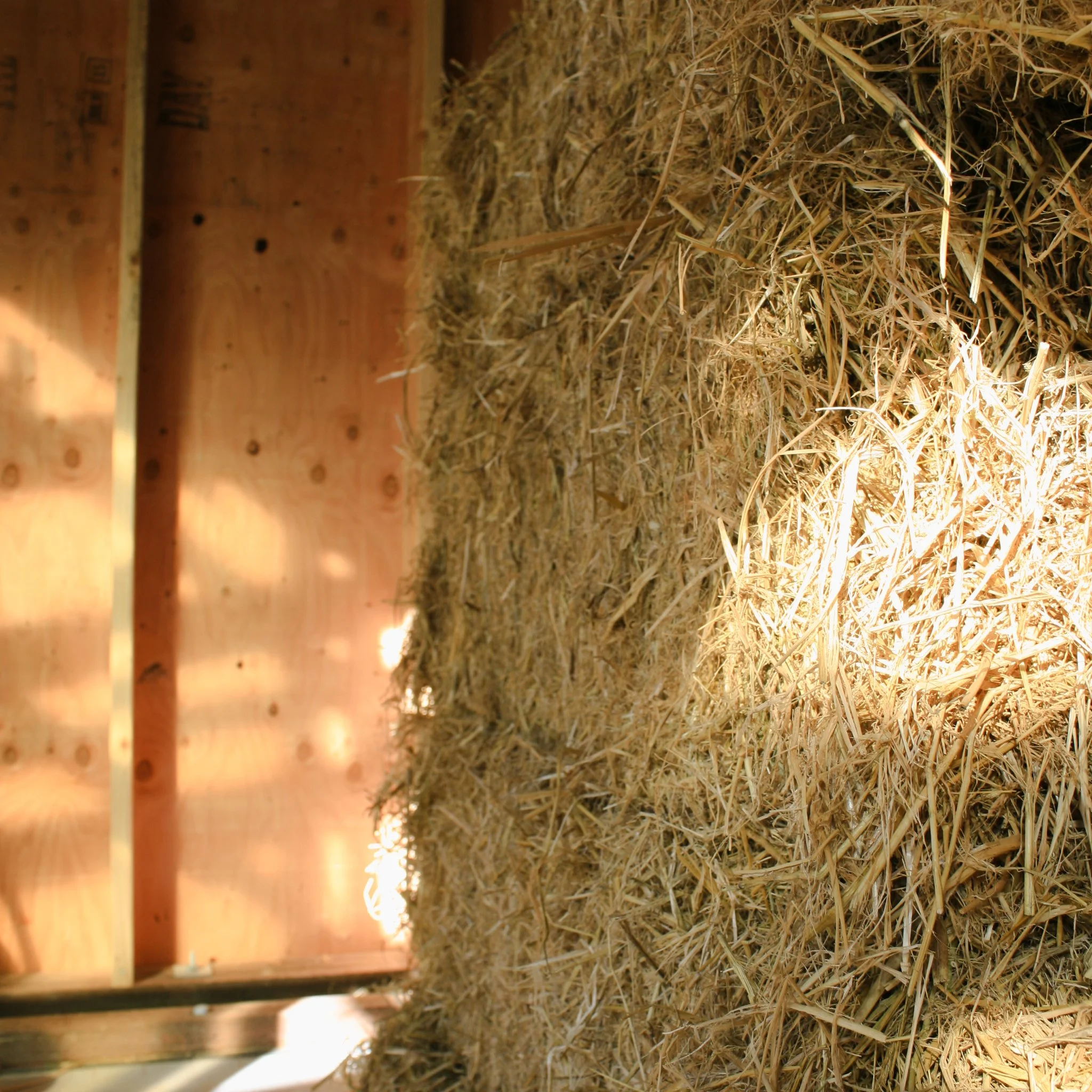 In the case of our Strawbale ADU #1 project in Walnut Creek, we sourced our rice straw directly from a local farmer, Tye Giesbrech in the Sacrament River Valley. The straw came directly from the farm to the jobsite on the back of Tye’s trailer.