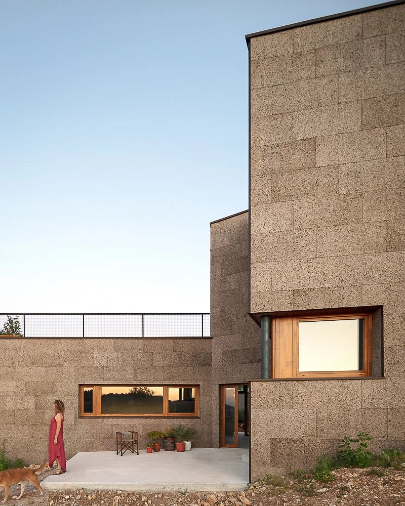 For the Farm-Creek Residence one of the early options we looked at included using compressed cork as an exterior cladding panel. Cork comes from the bark of cork oak trees, native to the Iberian Peninsula, and can be harvested in sections without killing the tree. Most of it is used for wine corks, but a company called Thermacork takes the byproducts from cork stopper production that would otherwise be burnt to make building cladding panels.