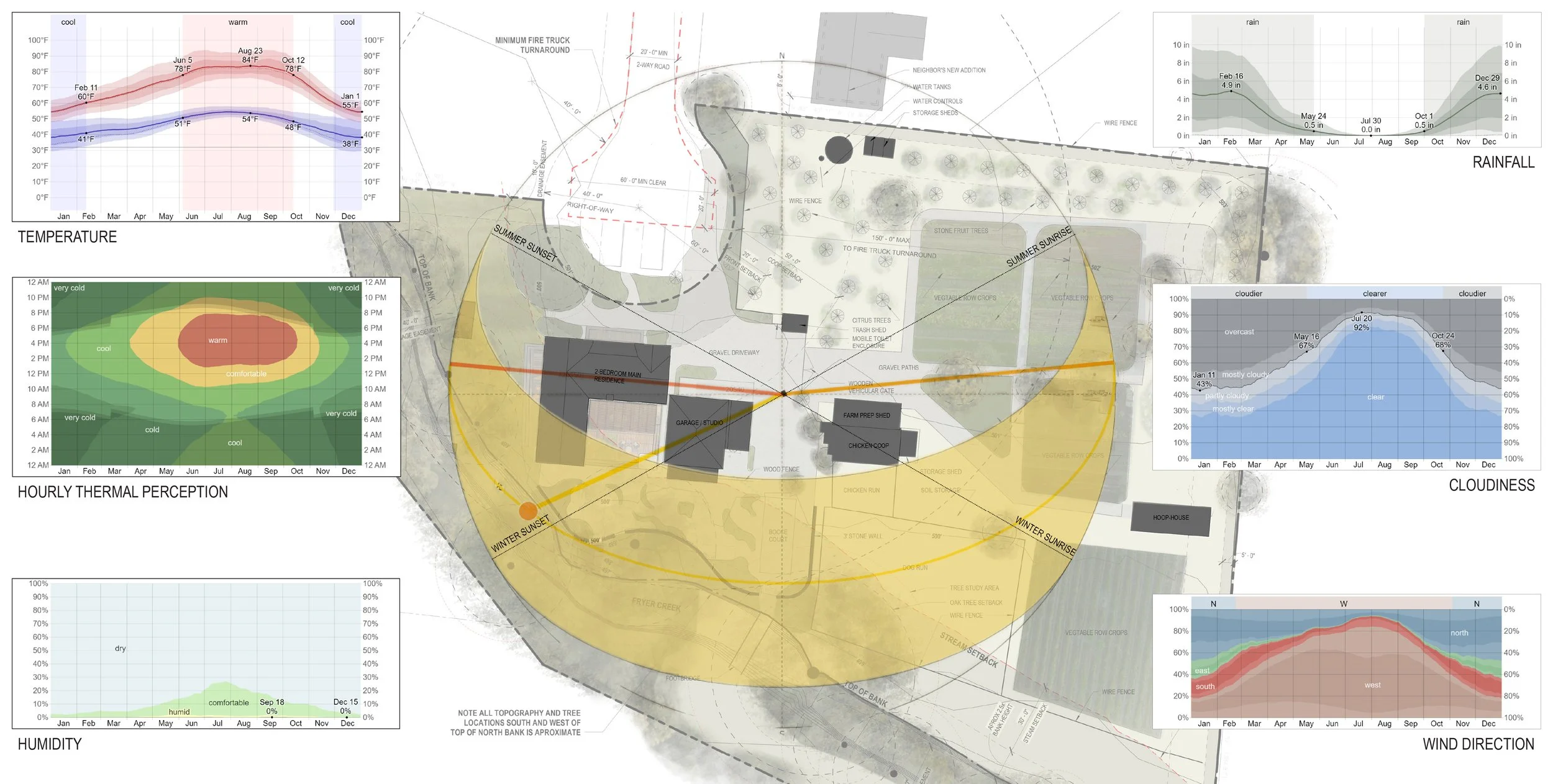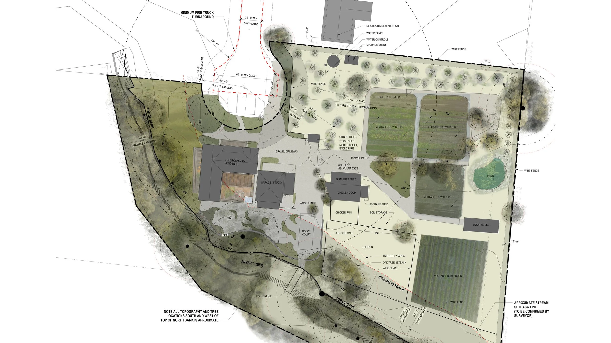 In the case of the Farm-Creek Residence this process is perfectly illustrated by the evolutions of the illustrated site plan from the analysis of the existing site, to the three initial options, through to our current site plan in the middle of Schematic Design.